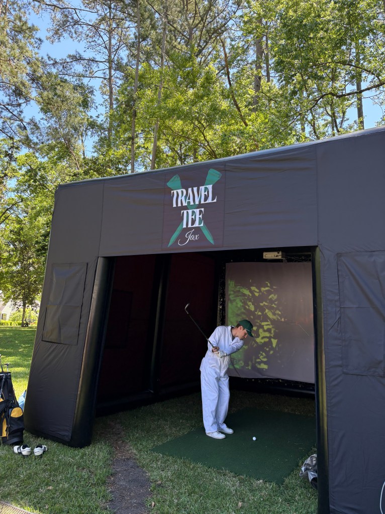 “My husband and I hosted a backyard Master’s party and incorporated Travel Tee Jax as an additional “add-on” activity. It was a total hit and definitely made the event enjoyable for all!! We 100% recommend this company for your party, corporate event, or fundraiser! They were easy to work with and the set up provided fun interaction for novice and pro golfers, both young and old alike.”